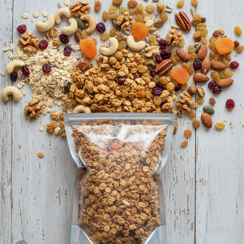 Granola & healthy breakfast mixes (high-protein, low-sugar, date-sweetened, functional)